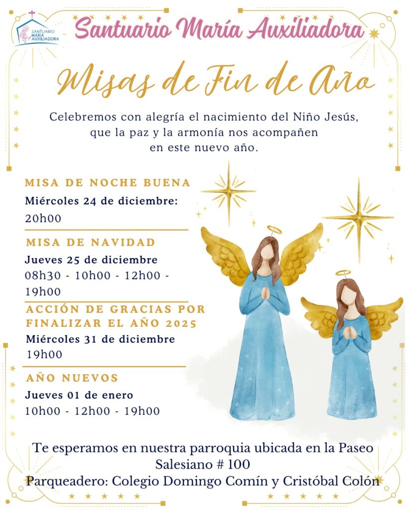 Les compartimos los horarios de las celebraciones eucarísticas para vivir con fe y alegría este tiempo especial del nacimiento del Niño Jesús y el inicio del nuevo año. 🙏🎄✨